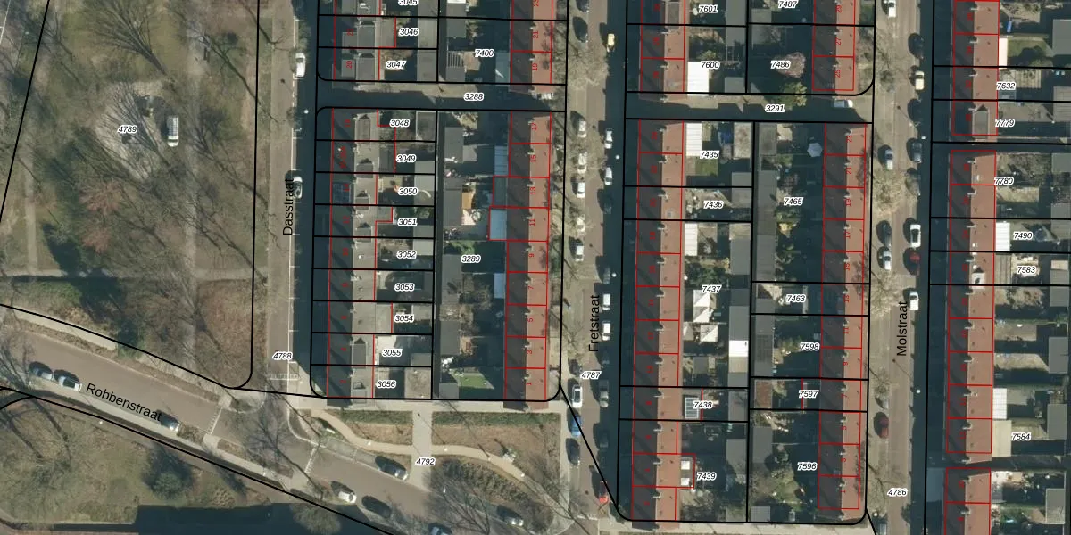 Fretstraat 9 is gelegen op kadastraal perceel WSL01G3289. Deze kadastrale aanduiding is uniek en wordt gebruikt door het Kadaster om eigendomsrechten en andere zakelijke rechten vast te leggen. Het perceel maakt onderdeel uit van de kadastrale gemeente Woensel.