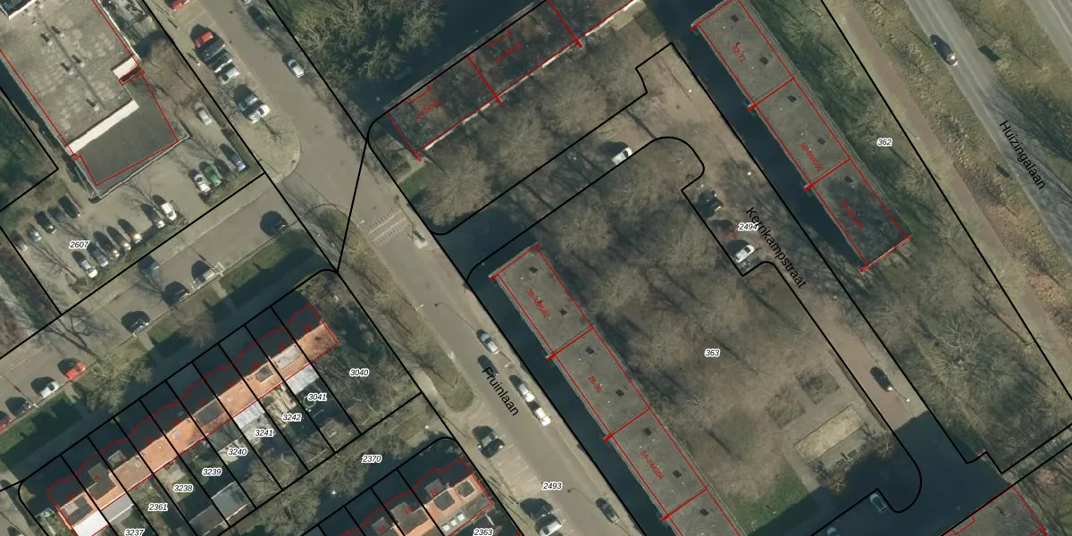 Het perceel waarop Fruinlaan 48 staat heeft een oppervlakte van 3770 m². Dit is een zeer groot perceel. De perceeloppervlakte wordt geregistreerd door het Kadaster. Gedetailleerde informatie over de maten van dit perceel kunt u vinden in het rapport Kadastrale kaart met maatvoering van Fruinlaan 48.