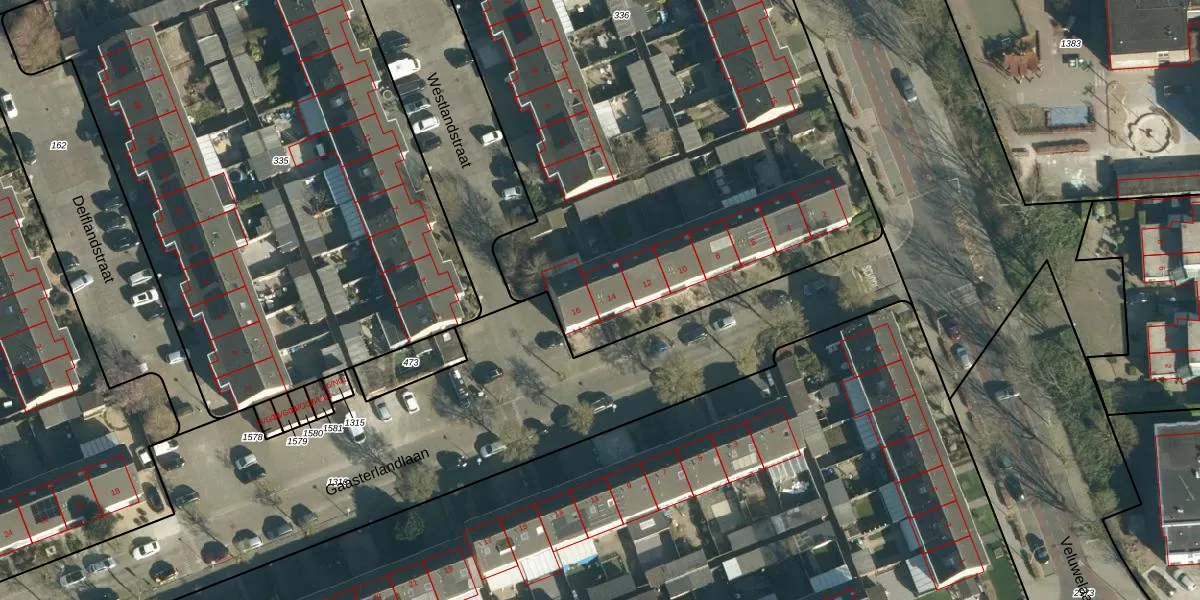 Gaasterlandlaan 14 is gelegen op kadastraal perceel WSL01R336. Deze kadastrale aanduiding is uniek en wordt gebruikt door het Kadaster om eigendomsrechten en andere zakelijke rechten vast te leggen. Het perceel maakt onderdeel uit van de kadastrale gemeente Woensel.