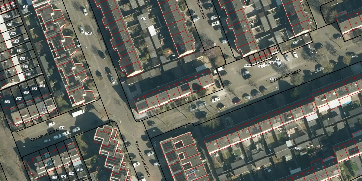 Gaasterlandlaan 22 is gelegen op kadastraal perceel WSL01R334. Deze kadastrale aanduiding is uniek en wordt gebruikt door het Kadaster om eigendomsrechten en andere zakelijke rechten vast te leggen. Het perceel maakt onderdeel uit van de kadastrale gemeente Woensel.