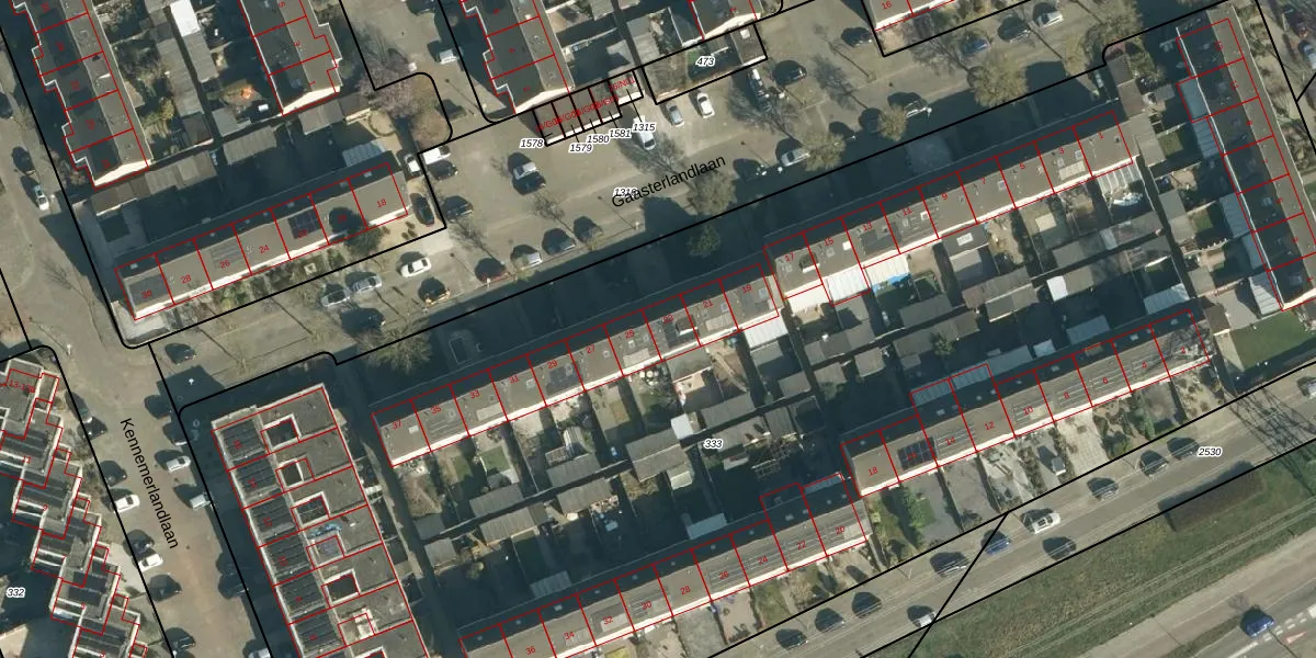 Gaasterlandlaan 23 is gelegen op kadastraal perceel WSL01R333. Deze kadastrale aanduiding is uniek en wordt gebruikt door het Kadaster om eigendomsrechten en andere zakelijke rechten vast te leggen. Het perceel maakt onderdeel uit van de kadastrale gemeente Woensel.
