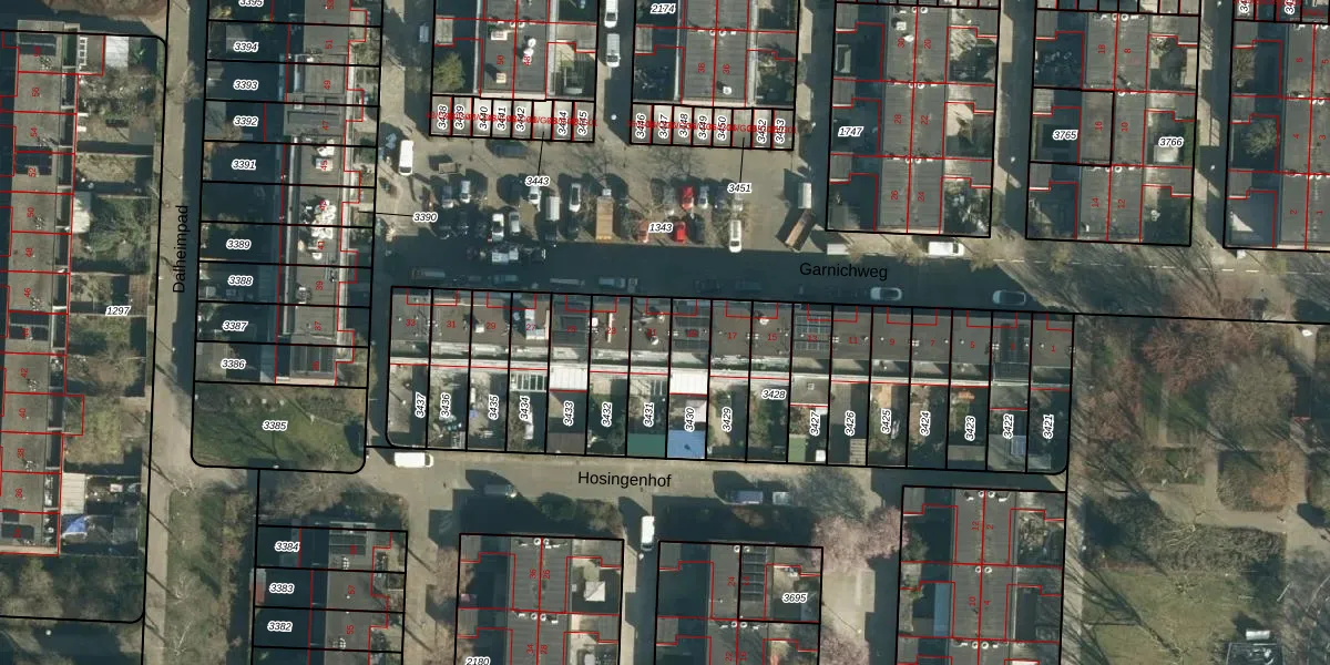 Garnichweg 21 is gelegen op kadastraal perceel WSL01P3431. Deze kadastrale aanduiding is uniek en wordt gebruikt door het Kadaster om eigendomsrechten en andere zakelijke rechten vast te leggen. Het perceel maakt onderdeel uit van de kadastrale gemeente Woensel.
