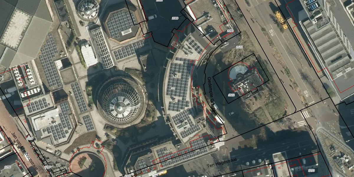 Het perceel waarop Gedempte Gracht 25 staat heeft een oppervlakte van 2,0 ha. Dit is een zeer groot perceel. De perceeloppervlakte wordt geregistreerd door het Kadaster. Gedetailleerde informatie over de maten van dit perceel kunt u vinden in het rapport Kadastrale kaart met maatvoering van Gedempte Gracht 25.
