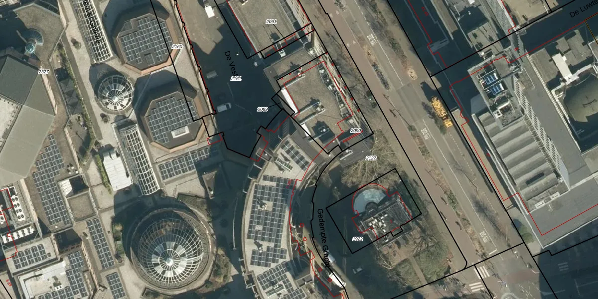 Het perceel waarop Gedempte Gracht 99 staat heeft een oppervlakte van 2,0 ha. Dit is een zeer groot perceel. De perceeloppervlakte wordt geregistreerd door het Kadaster. Gedetailleerde informatie over de maten van dit perceel kunt u vinden in het rapport Kadastrale kaart met maatvoering van Gedempte Gracht 99.
