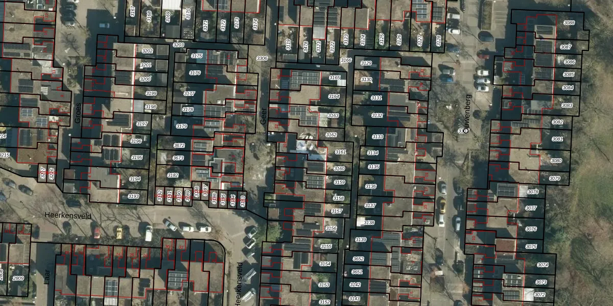 Het perceel waarop Geer 10 staat heeft een oppervlakte van 174 m². Dit is een middelgroot perceel. De perceeloppervlakte wordt geregistreerd door het Kadaster. Gedetailleerde informatie over de maten van dit perceel kunt u vinden in het rapport Kadastrale kaart met maatvoering van Geer 10.