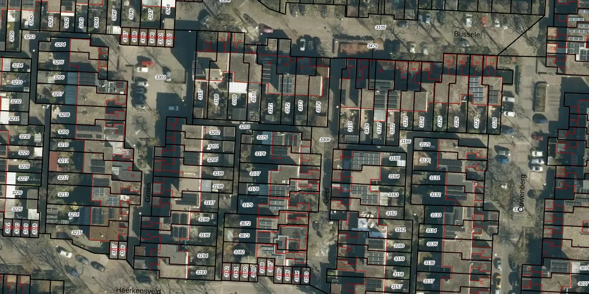 Het perceel waarop Geer 15 staat heeft een oppervlakte van 114 m². Dit is een middelgroot perceel. De perceeloppervlakte wordt geregistreerd door het Kadaster. Gedetailleerde informatie over de maten van dit perceel kunt u vinden in het rapport Kadastrale kaart met maatvoering van Geer 15.