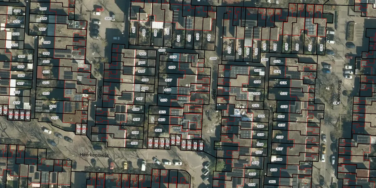Het perceel waarop Geer 9 staat heeft een oppervlakte van 127 m². Dit is een middelgroot perceel. De perceeloppervlakte wordt geregistreerd door het Kadaster. Gedetailleerde informatie over de maten van dit perceel kunt u vinden in het rapport Kadastrale kaart met maatvoering van Geer 9.