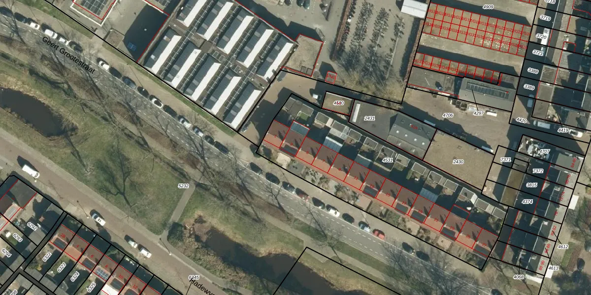 Het perceel waarop Geert Grootestraat 3 staat heeft een oppervlakte van 2080 m². Dit is een zeer groot perceel. De perceeloppervlakte wordt geregistreerd door het Kadaster. Gedetailleerde informatie over de maten van dit perceel kunt u vinden in het rapport Kadastrale kaart met maatvoering van Geert Grootestraat 3.
