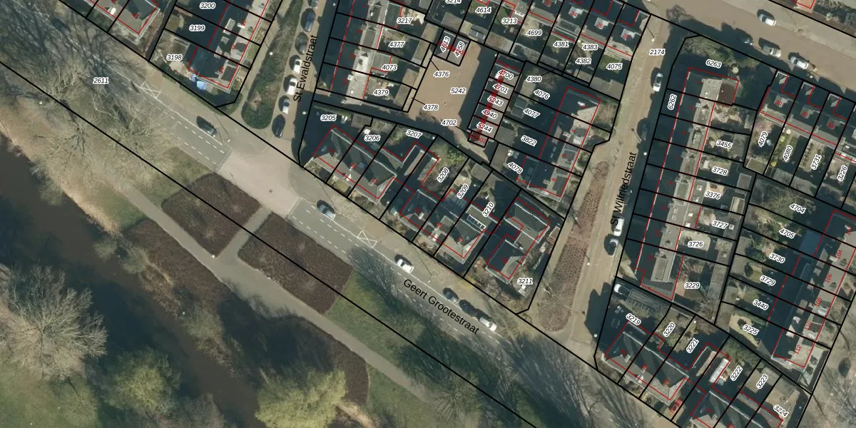 Gebruik de zoekbalk of klik op een perceel voor informatie over de adressen binnen dit perceel.