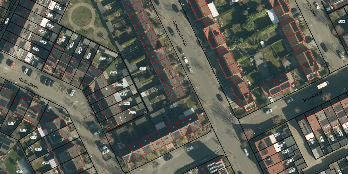 Gelaarsde Kat 119 is gelegen op kadastraal perceel WSL01W5452. Deze kadastrale aanduiding is uniek en wordt gebruikt door het Kadaster om eigendomsrechten en andere zakelijke rechten vast te leggen. Het perceel maakt onderdeel uit van de kadastrale gemeente Woensel.