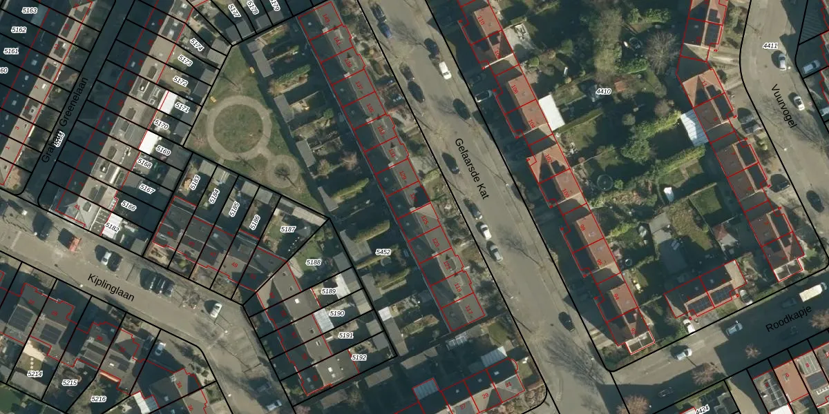 Gelaarsde Kat 127 is gelegen op kadastraal perceel WSL01W5452. Deze kadastrale aanduiding is uniek en wordt gebruikt door het Kadaster om eigendomsrechten en andere zakelijke rechten vast te leggen. Het perceel maakt onderdeel uit van de kadastrale gemeente Woensel.