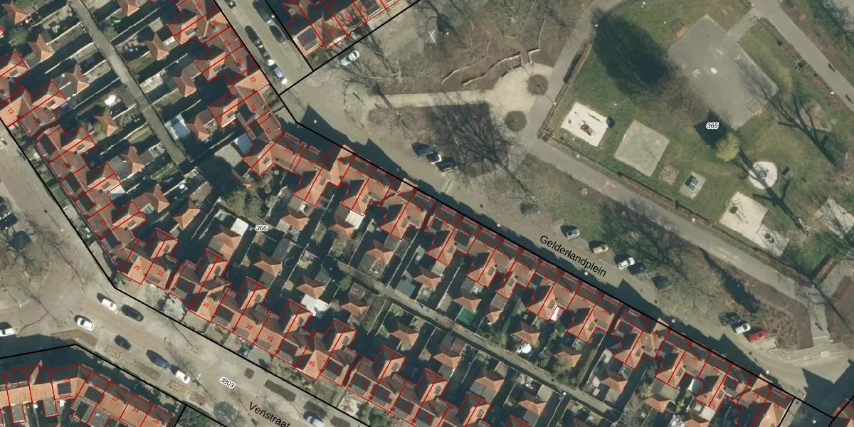 Gelderlandplein 45 is gelegen op kadastraal perceel STR03C366. Deze kadastrale aanduiding is uniek en wordt gebruikt door het Kadaster om eigendomsrechten en andere zakelijke rechten vast te leggen. Het perceel maakt onderdeel uit van de kadastrale gemeente Strijp.