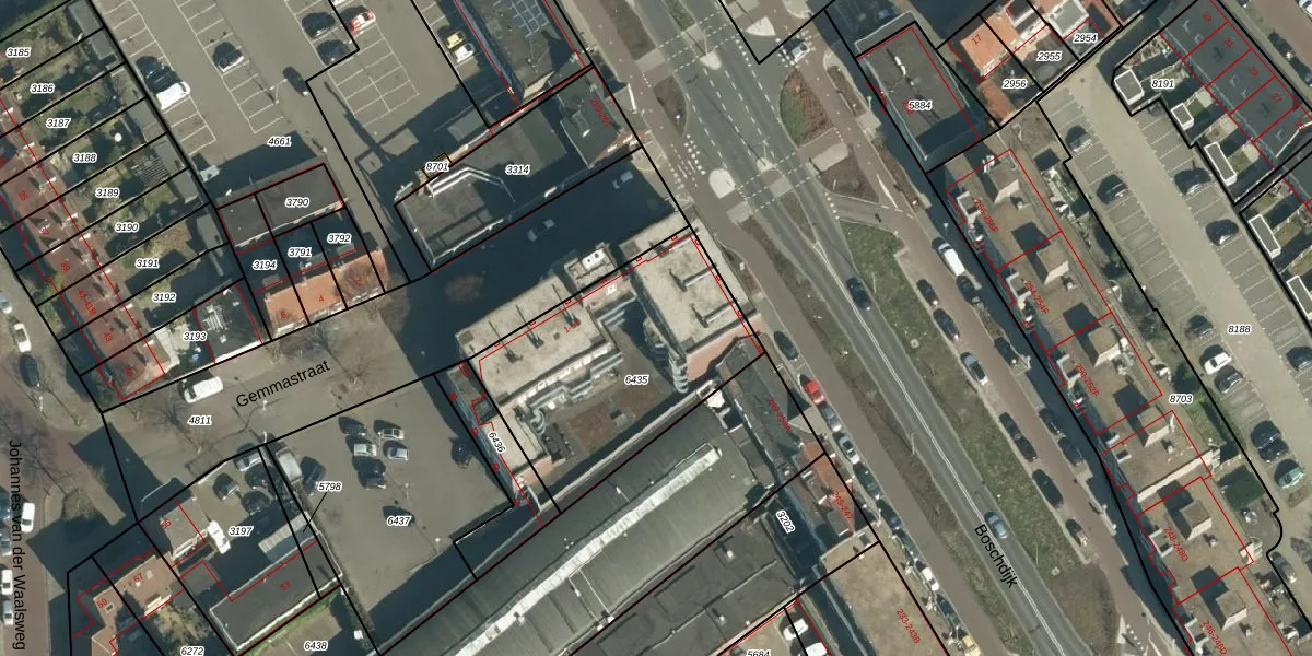 Het perceel waarop Gemmastraat 23 staat heeft een oppervlakte van 986 m². Dit is een groot perceel. De perceeloppervlakte wordt geregistreerd door het Kadaster. Gedetailleerde informatie over de maten van dit perceel kunt u vinden in het rapport Kadastrale kaart met maatvoering van Gemmastraat 23.