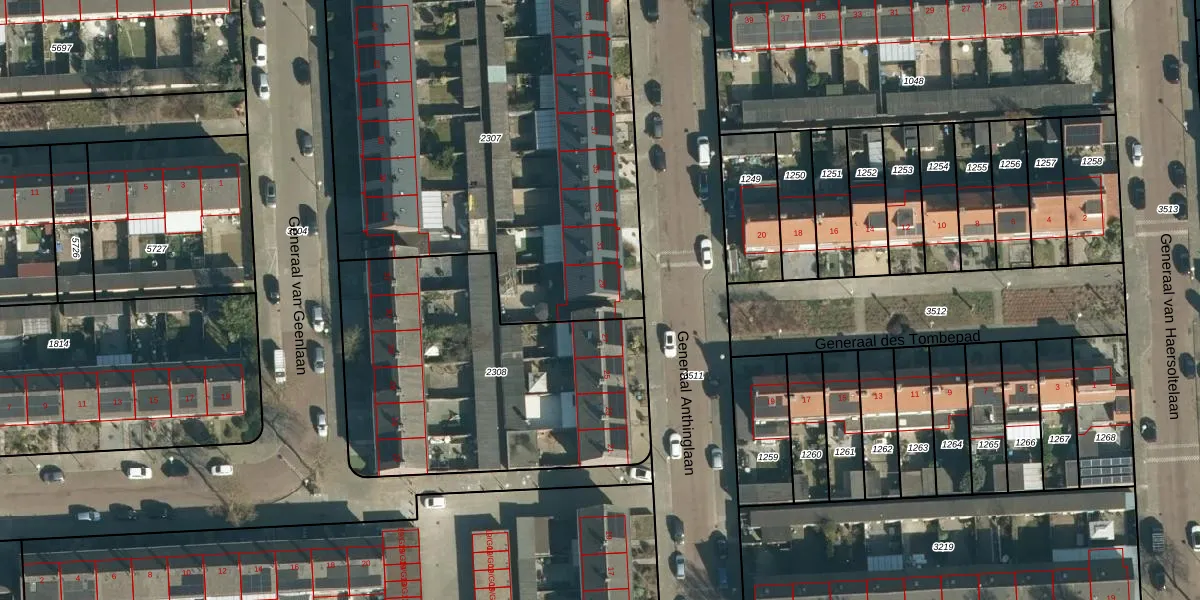 Het perceel waarop Generaal Anthinglaan 29 staat heeft een oppervlakte van 2481 m². Dit is een zeer groot perceel. De perceeloppervlakte wordt geregistreerd door het Kadaster. Gedetailleerde informatie over de maten van dit perceel kunt u vinden in het rapport Kadastrale kaart met maatvoering van Generaal Anthinglaan 29.