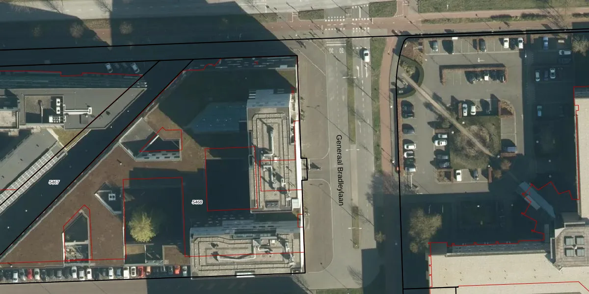 Het perceel waarop Generaal Bradleylaan 30 staat heeft een oppervlakte van 5523 m². Dit is een zeer groot perceel. De perceeloppervlakte wordt geregistreerd door het Kadaster. Gedetailleerde informatie over de maten van dit perceel kunt u vinden in het rapport Kadastrale kaart met maatvoering van Generaal Bradleylaan 30.