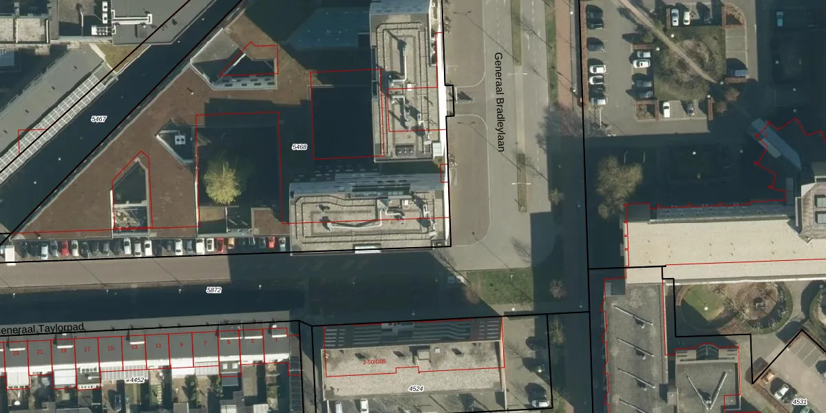 Het perceel waarop Generaal Bradleylaan 66 staat heeft een oppervlakte van 5523 m². Dit is een zeer groot perceel. De perceeloppervlakte wordt geregistreerd door het Kadaster. Gedetailleerde informatie over de maten van dit perceel kunt u vinden in het rapport Kadastrale kaart met maatvoering van Generaal Bradleylaan 66.