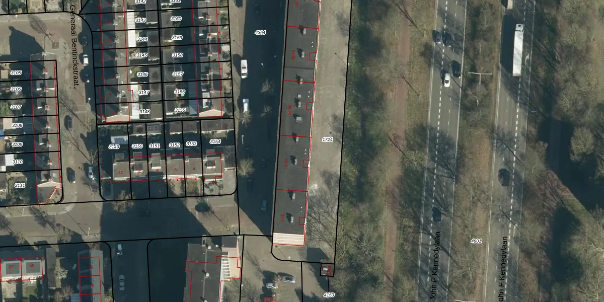 Het perceel waarop Generaal de Carislaan 24 staat heeft een oppervlakte van 1998 m². Dit is een zeer groot perceel. De perceeloppervlakte wordt geregistreerd door het Kadaster. Gedetailleerde informatie over de maten van dit perceel kunt u vinden in het rapport Kadastrale kaart met maatvoering van Generaal de Carislaan 24.