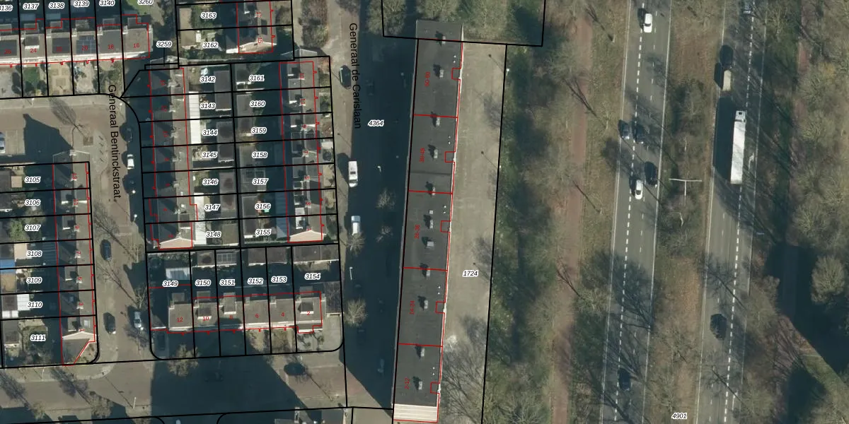 Het perceel waarop Generaal de Carislaan 32 staat heeft een oppervlakte van 1998 m². Dit is een zeer groot perceel. De perceeloppervlakte wordt geregistreerd door het Kadaster. Gedetailleerde informatie over de maten van dit perceel kunt u vinden in het rapport Kadastrale kaart met maatvoering van Generaal de Carislaan 32.