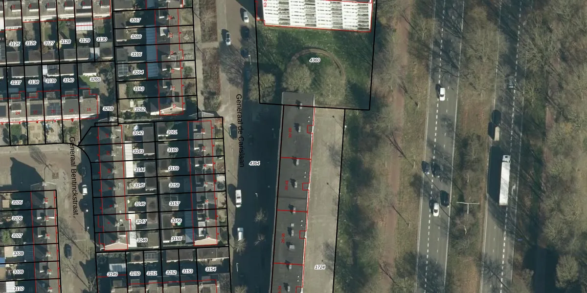 Generaal de Carislaan 54 is gelegen op kadastraal perceel WSL01L1724. Deze kadastrale aanduiding is uniek en wordt gebruikt door het Kadaster om eigendomsrechten en andere zakelijke rechten vast te leggen. Het perceel maakt onderdeel uit van de kadastrale gemeente Woensel.