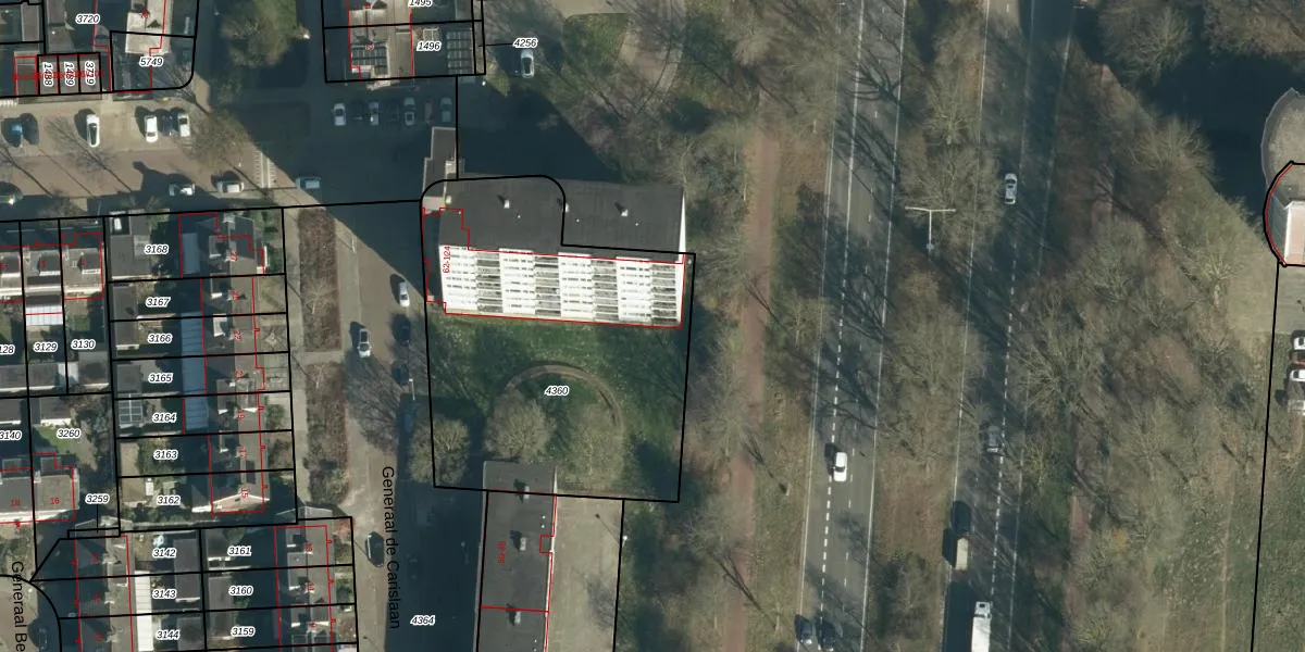 Generaal de Carislaan 68 is gelegen op kadastraal perceel WSL01L4360. Deze kadastrale aanduiding is uniek en wordt gebruikt door het Kadaster om eigendomsrechten en andere zakelijke rechten vast te leggen. Het perceel maakt onderdeel uit van de kadastrale gemeente Woensel.
