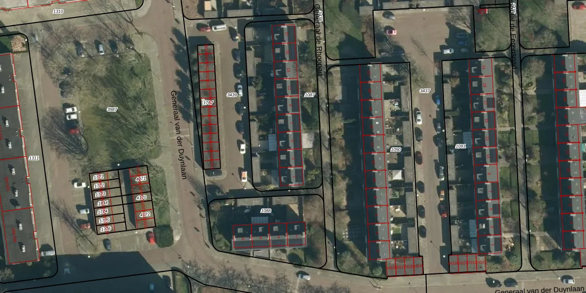 Generaal de Rhoopad 5 is gelegen op kadastraal perceel WSL01L1087. Deze kadastrale aanduiding is uniek en wordt gebruikt door het Kadaster om eigendomsrechten en andere zakelijke rechten vast te leggen. Het perceel maakt onderdeel uit van de kadastrale gemeente Woensel.