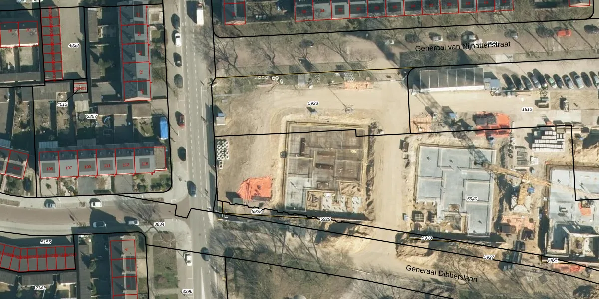 Het perceel waarop Generaal Dibbetslaan 193 staat heeft een oppervlakte van 5131 m². Dit is een zeer groot perceel. De perceeloppervlakte wordt geregistreerd door het Kadaster. Gedetailleerde informatie over de maten van dit perceel kunt u vinden in het rapport Kadastrale kaart met maatvoering van Generaal Dibbetslaan 193.