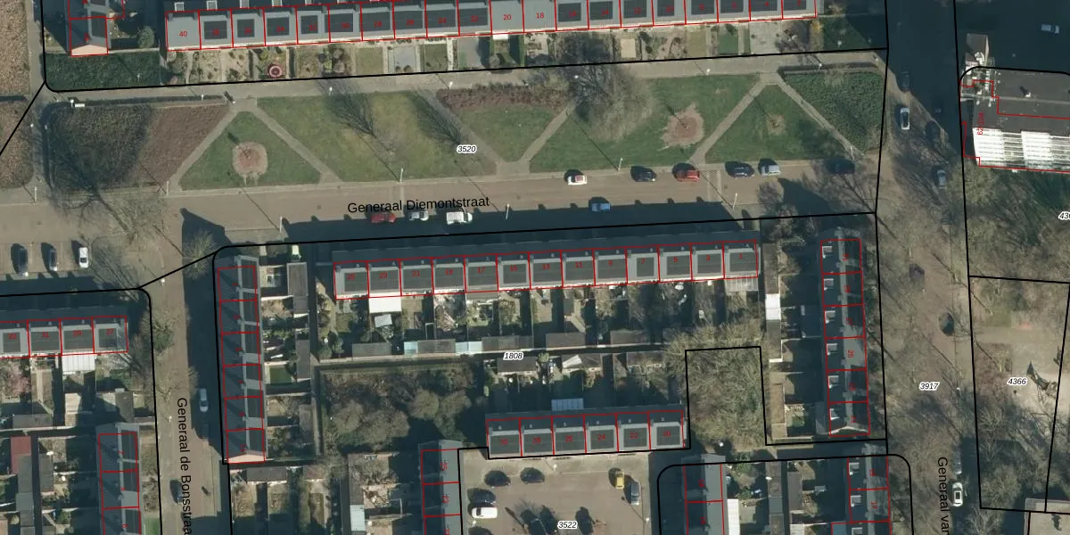 Het perceel waarop Generaal Diemontstraat 13 staat heeft een oppervlakte van 5928 m². Dit is een zeer groot perceel. De perceeloppervlakte wordt geregistreerd door het Kadaster. Gedetailleerde informatie over de maten van dit perceel kunt u vinden in het rapport Kadastrale kaart met maatvoering van Generaal Diemontstraat 13.