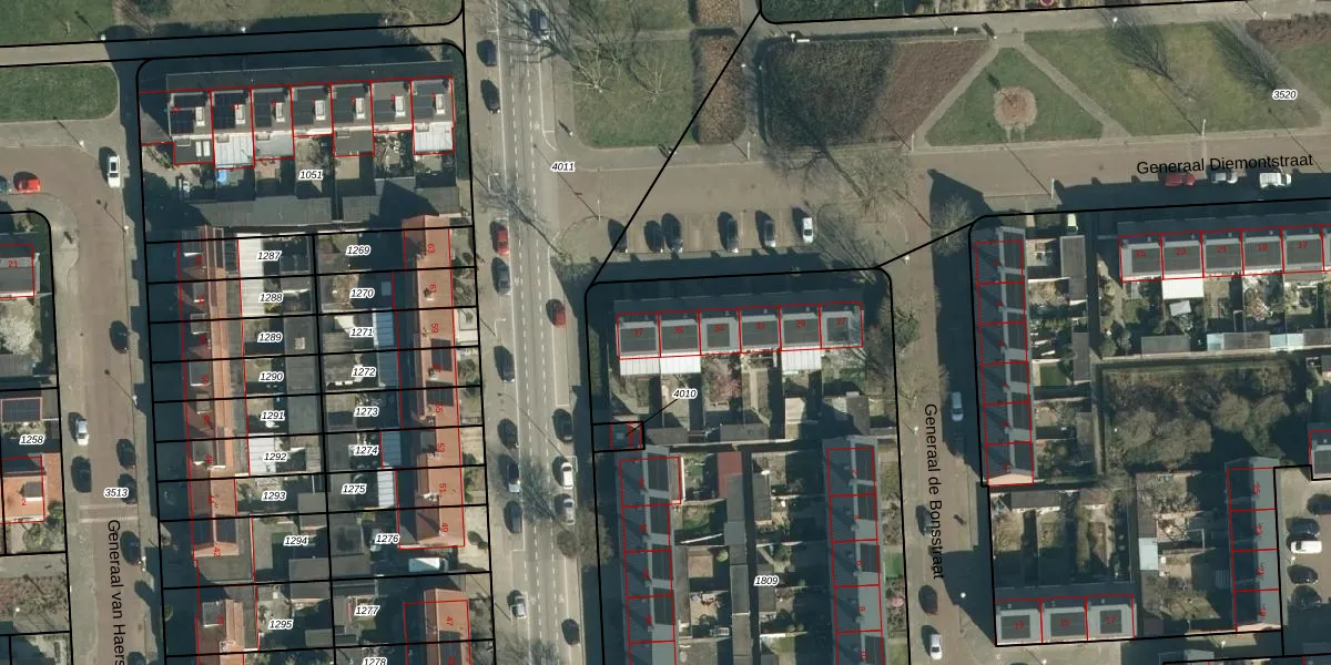 Het perceel waarop Generaal Diemontstraat 35 staat heeft een oppervlakte van 3735 m². Dit is een zeer groot perceel. De perceeloppervlakte wordt geregistreerd door het Kadaster. Gedetailleerde informatie over de maten van dit perceel kunt u vinden in het rapport Kadastrale kaart met maatvoering van Generaal Diemontstraat 35.