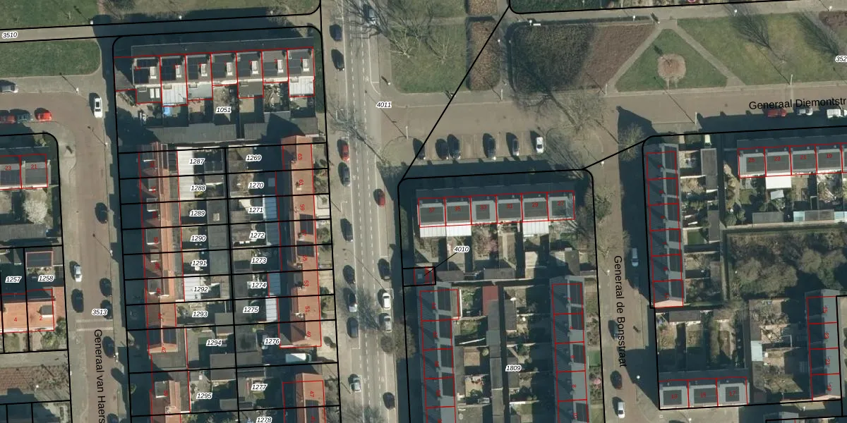 Het perceel waarop Generaal Diemontstraat 37 staat heeft een oppervlakte van 3735 m². Dit is een zeer groot perceel. De perceeloppervlakte wordt geregistreerd door het Kadaster. Gedetailleerde informatie over de maten van dit perceel kunt u vinden in het rapport Kadastrale kaart met maatvoering van Generaal Diemontstraat 37.