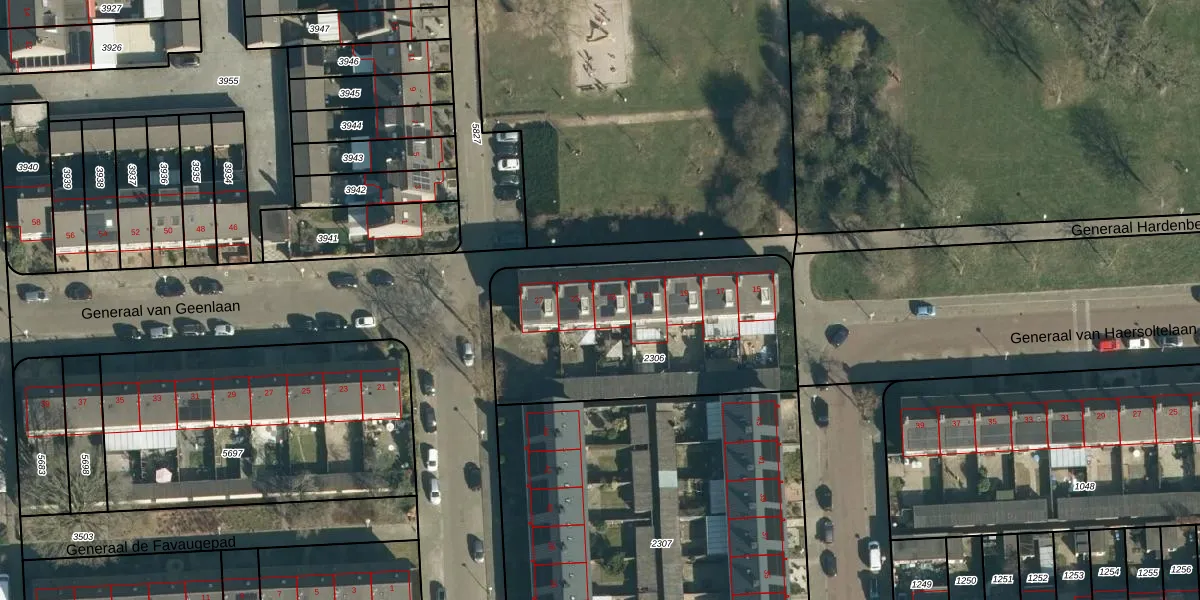 Generaal Hardenbergpad 23 is gelegen op kadastraal perceel WSL01L2306. Deze kadastrale aanduiding is uniek en wordt gebruikt door het Kadaster om eigendomsrechten en andere zakelijke rechten vast te leggen. Het perceel maakt onderdeel uit van de kadastrale gemeente Woensel.