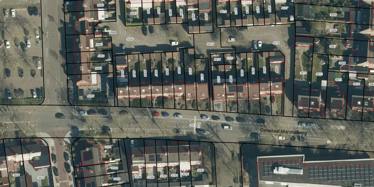Generaal Marshallweg 146 is gelegen op kadastraal perceel WSL01L5070. Deze kadastrale aanduiding is uniek en wordt gebruikt door het Kadaster om eigendomsrechten en andere zakelijke rechten vast te leggen. Het perceel maakt onderdeel uit van de kadastrale gemeente Woensel.