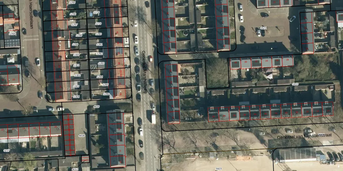 Generaal Marshallweg 26 is gelegen op kadastraal perceel WSL01L1810. Deze kadastrale aanduiding is uniek en wordt gebruikt door het Kadaster om eigendomsrechten en andere zakelijke rechten vast te leggen. Het perceel maakt onderdeel uit van de kadastrale gemeente Woensel.