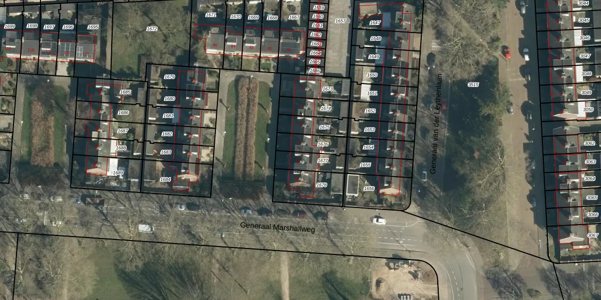 Generaal Marshallweg 70 is gelegen op kadastraal perceel WSL01L1676. Deze kadastrale aanduiding is uniek en wordt gebruikt door het Kadaster om eigendomsrechten en andere zakelijke rechten vast te leggen. Het perceel maakt onderdeel uit van de kadastrale gemeente Woensel.