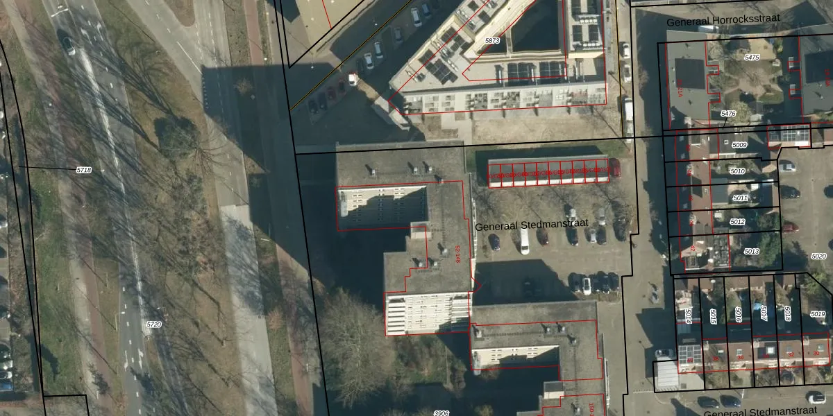 Het perceel waarop Generaal Stedmanstraat 102 staat heeft een oppervlakte van 9448 m². Dit is een zeer groot perceel. De perceeloppervlakte wordt geregistreerd door het Kadaster. Gedetailleerde informatie over de maten van dit perceel kunt u vinden in het rapport Kadastrale kaart met maatvoering van Generaal Stedmanstraat 102.