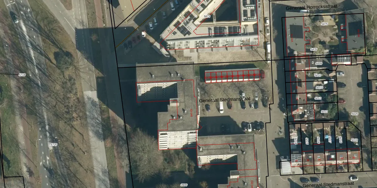 Het perceel waarop Generaal Stedmanstraat 120 staat heeft een oppervlakte van 9448 m². Dit is een zeer groot perceel. De perceeloppervlakte wordt geregistreerd door het Kadaster. Gedetailleerde informatie over de maten van dit perceel kunt u vinden in het rapport Kadastrale kaart met maatvoering van Generaal Stedmanstraat 120.