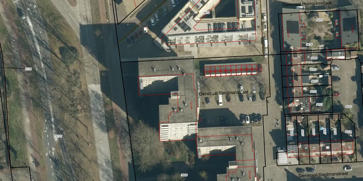 Het perceel waarop Generaal Stedmanstraat 132 staat heeft een oppervlakte van 9448 m². Dit is een zeer groot perceel. De perceeloppervlakte wordt geregistreerd door het Kadaster. Gedetailleerde informatie over de maten van dit perceel kunt u vinden in het rapport Kadastrale kaart met maatvoering van Generaal Stedmanstraat 132.
