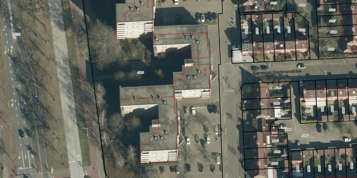 Het perceel waarop Generaal Stedmanstraat 178 staat heeft een oppervlakte van 9448 m². Dit is een zeer groot perceel. De perceeloppervlakte wordt geregistreerd door het Kadaster. Gedetailleerde informatie over de maten van dit perceel kunt u vinden in het rapport Kadastrale kaart met maatvoering van Generaal Stedmanstraat 178.