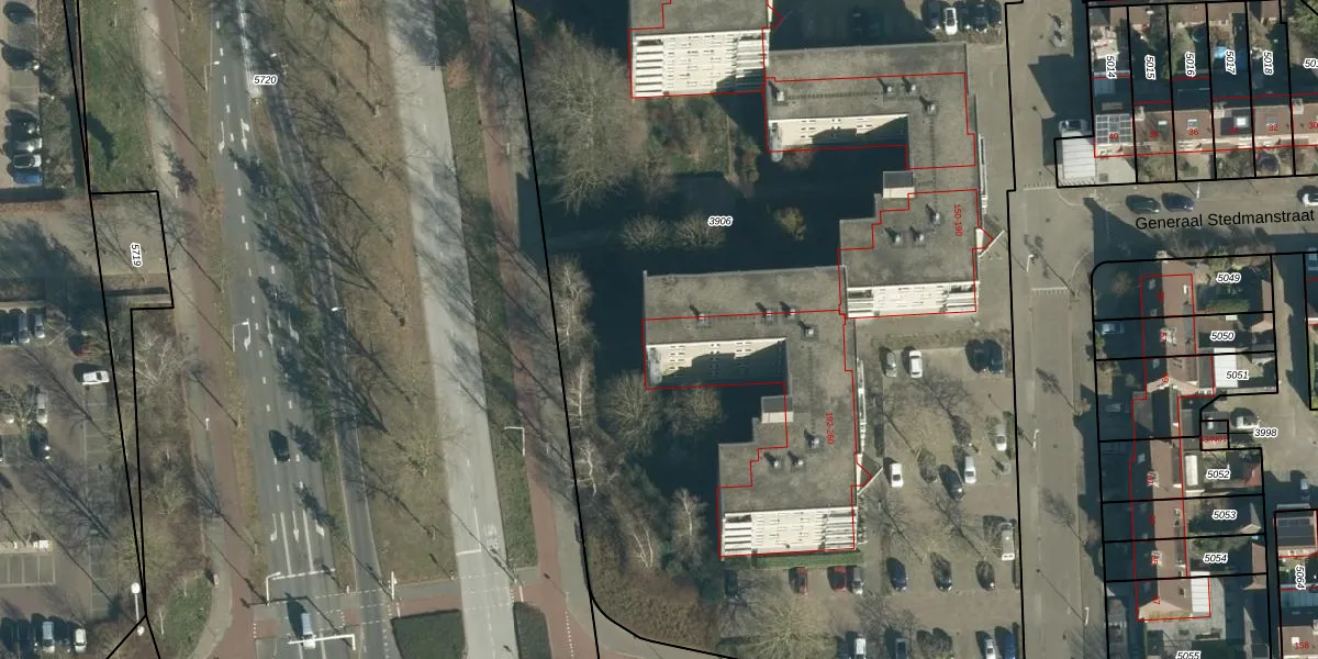 Het perceel waarop Generaal Stedmanstraat 192 staat heeft een oppervlakte van 9448 m². Dit is een zeer groot perceel. De perceeloppervlakte wordt geregistreerd door het Kadaster. Gedetailleerde informatie over de maten van dit perceel kunt u vinden in het rapport Kadastrale kaart met maatvoering van Generaal Stedmanstraat 192.