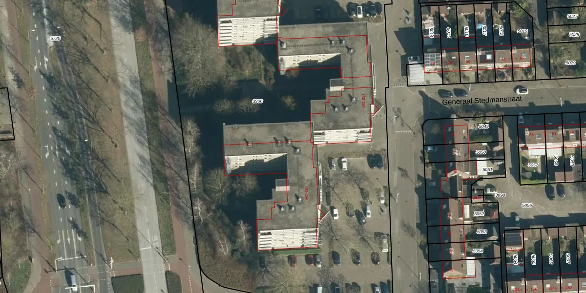 Het perceel waarop Generaal Stedmanstraat 202 staat heeft een oppervlakte van 9448 m². Dit is een zeer groot perceel. De perceeloppervlakte wordt geregistreerd door het Kadaster. Gedetailleerde informatie over de maten van dit perceel kunt u vinden in het rapport Kadastrale kaart met maatvoering van Generaal Stedmanstraat 202.