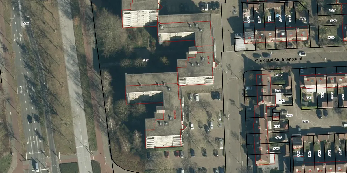Het perceel waarop Generaal Stedmanstraat 204 staat heeft een oppervlakte van 9448 m². Dit is een zeer groot perceel. De perceeloppervlakte wordt geregistreerd door het Kadaster. Gedetailleerde informatie over de maten van dit perceel kunt u vinden in het rapport Kadastrale kaart met maatvoering van Generaal Stedmanstraat 204.