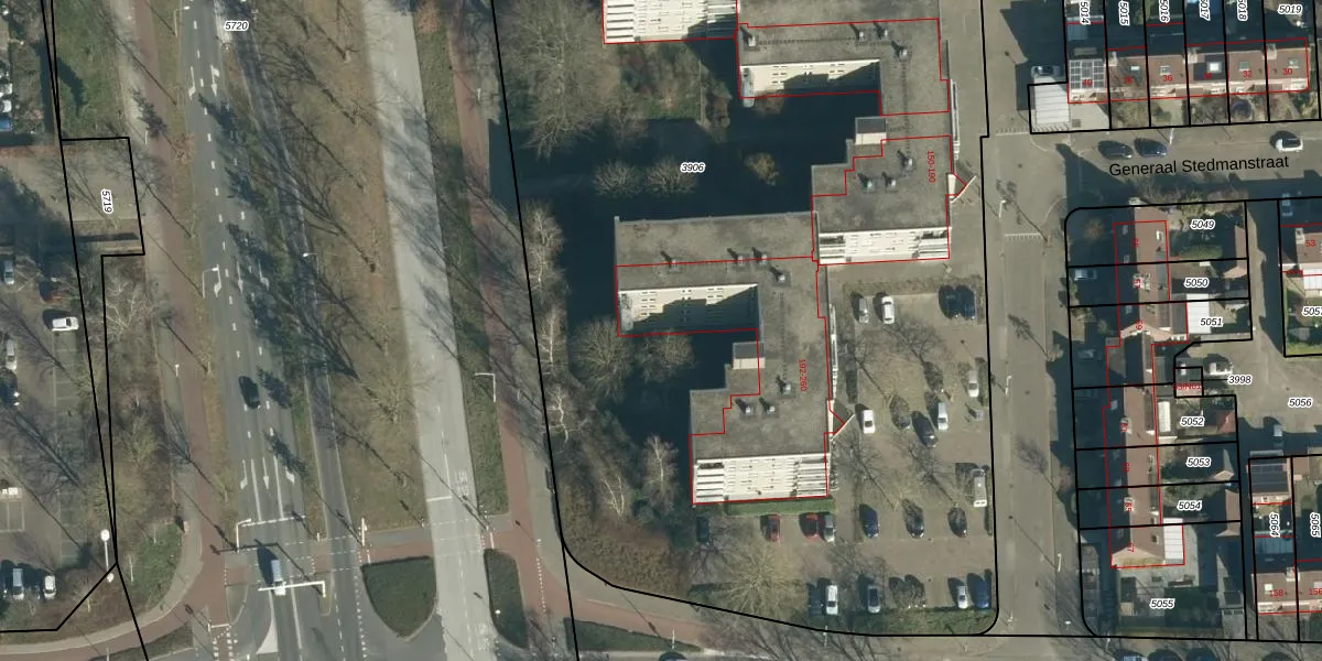 Het perceel waarop Generaal Stedmanstraat 250 staat heeft een oppervlakte van 9448 m². Dit is een zeer groot perceel. De perceeloppervlakte wordt geregistreerd door het Kadaster. Gedetailleerde informatie over de maten van dit perceel kunt u vinden in het rapport Kadastrale kaart met maatvoering van Generaal Stedmanstraat 250.