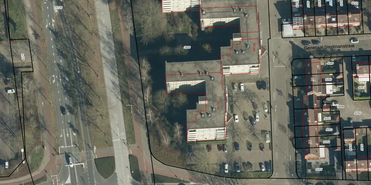 Het perceel waarop Generaal Stedmanstraat 252 staat heeft een oppervlakte van 9448 m². Dit is een zeer groot perceel. De perceeloppervlakte wordt geregistreerd door het Kadaster. Gedetailleerde informatie over de maten van dit perceel kunt u vinden in het rapport Kadastrale kaart met maatvoering van Generaal Stedmanstraat 252.