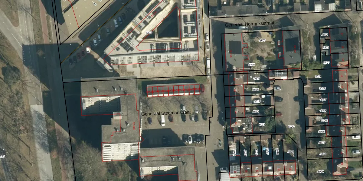 Het perceel waarop Generaal Stedmanstraat 50-G04 staat heeft een oppervlakte van 9448 m². Dit is een zeer groot perceel. De perceeloppervlakte wordt geregistreerd door het Kadaster. Gedetailleerde informatie over de maten van dit perceel kunt u vinden in het rapport Kadastrale kaart met maatvoering van Generaal Stedmanstraat 50-G04.