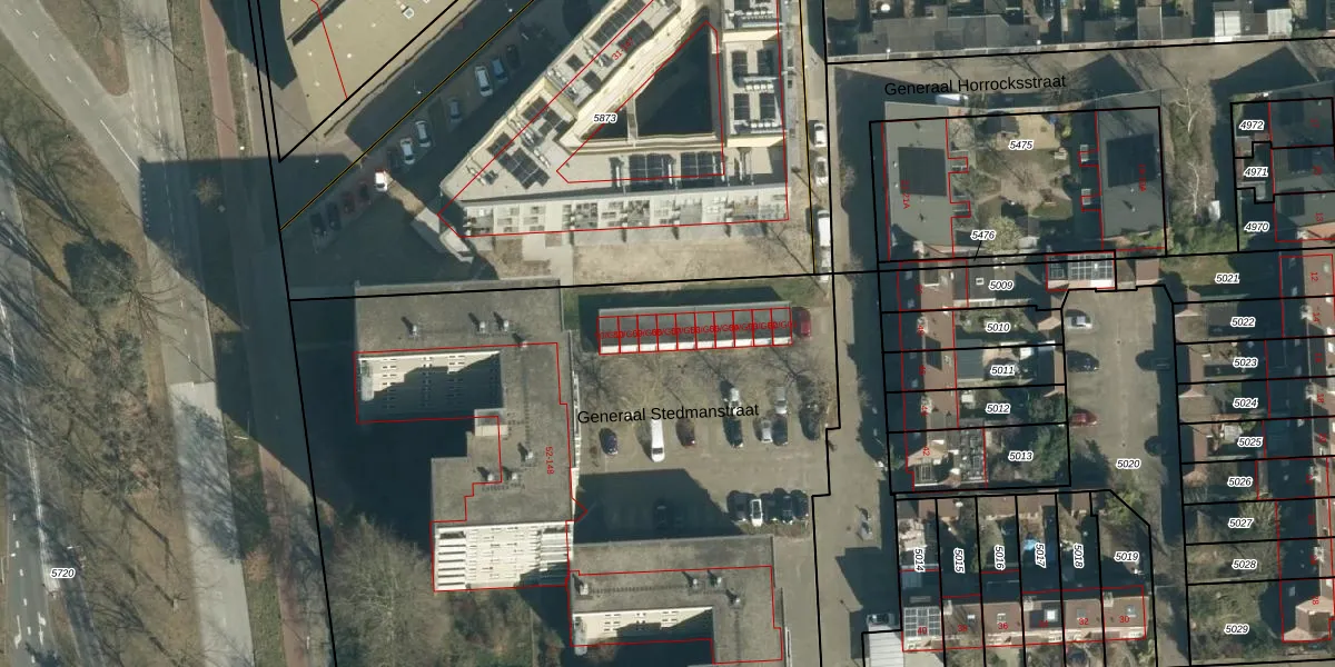 Het perceel waarop Generaal Stedmanstraat 50-G07 staat heeft een oppervlakte van 9448 m². Dit is een zeer groot perceel. De perceeloppervlakte wordt geregistreerd door het Kadaster. Gedetailleerde informatie over de maten van dit perceel kunt u vinden in het rapport Kadastrale kaart met maatvoering van Generaal Stedmanstraat 50-G07.