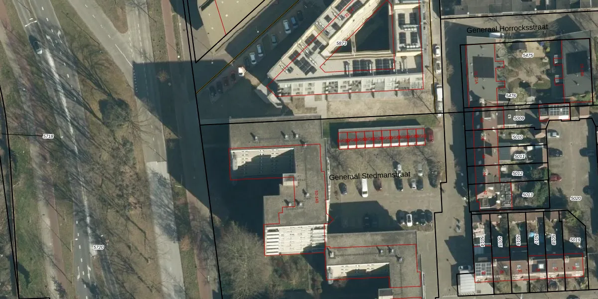 Het perceel waarop Generaal Stedmanstraat 62 staat heeft een oppervlakte van 9448 m². Dit is een zeer groot perceel. De perceeloppervlakte wordt geregistreerd door het Kadaster. Gedetailleerde informatie over de maten van dit perceel kunt u vinden in het rapport Kadastrale kaart met maatvoering van Generaal Stedmanstraat 62.