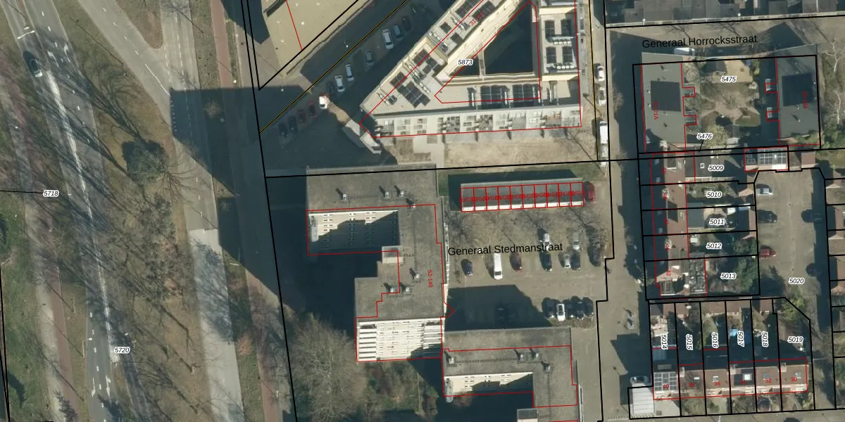 Het perceel waarop Generaal Stedmanstraat 64 staat heeft een oppervlakte van 9448 m². Dit is een zeer groot perceel. De perceeloppervlakte wordt geregistreerd door het Kadaster. Gedetailleerde informatie over de maten van dit perceel kunt u vinden in het rapport Kadastrale kaart met maatvoering van Generaal Stedmanstraat 64.
