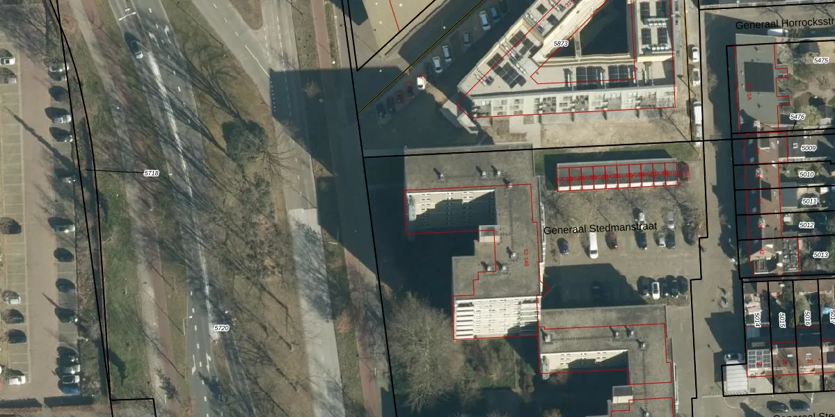 Het perceel waarop Generaal Stedmanstraat 80 staat heeft een oppervlakte van 9448 m². Dit is een zeer groot perceel. De perceeloppervlakte wordt geregistreerd door het Kadaster. Gedetailleerde informatie over de maten van dit perceel kunt u vinden in het rapport Kadastrale kaart met maatvoering van Generaal Stedmanstraat 80.