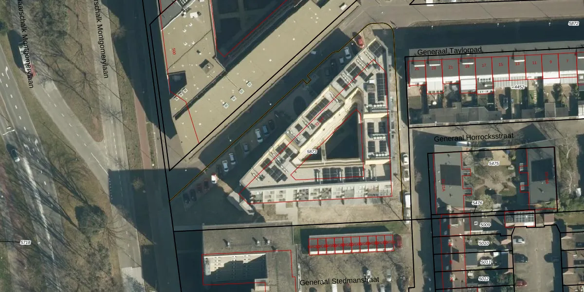Generaal Taylorpad 111 is gelegen op kadastraal perceel WSL01L5873. Deze kadastrale aanduiding is uniek en wordt gebruikt door het Kadaster om eigendomsrechten en andere zakelijke rechten vast te leggen. Het perceel maakt onderdeel uit van de kadastrale gemeente Woensel.