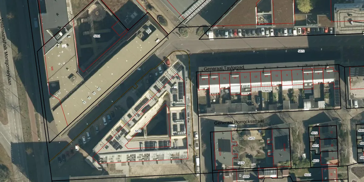 Generaal Taylorpad 123 is gelegen op kadastraal perceel WSL01L5873. Deze kadastrale aanduiding is uniek en wordt gebruikt door het Kadaster om eigendomsrechten en andere zakelijke rechten vast te leggen. Het perceel maakt onderdeel uit van de kadastrale gemeente Woensel.