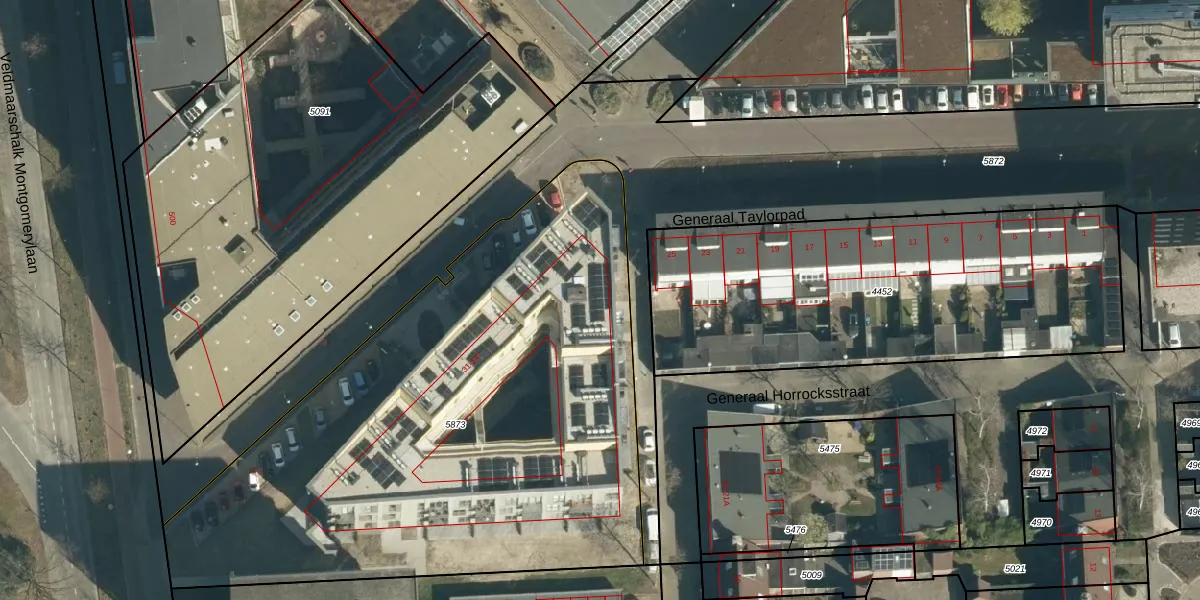 Generaal Taylorpad 141 is gelegen op kadastraal perceel WSL01L5873. Deze kadastrale aanduiding is uniek en wordt gebruikt door het Kadaster om eigendomsrechten en andere zakelijke rechten vast te leggen. Het perceel maakt onderdeel uit van de kadastrale gemeente Woensel.